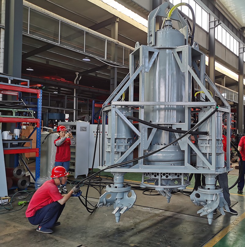 液壓泥漿泵是由液壓系統(tǒng)直接提供動(dòng)力,經(jīng)由液壓馬達(dá)執(zhí)行,將液壓能轉(zhuǎn)化為機(jī)械能的新型潛水式泥漿泵。該泵在保留了傳統(tǒng)泥沙泵有效、耐磨、無(wú)堵塞等特性的前提下,解決了傳統(tǒng)電動(dòng)泥漿泵因部分工況電力供應(yīng)困難無(wú)法使用的難題。利用挖掘機(jī)具有液壓系統(tǒng)的特點(diǎn),將傳統(tǒng)泥漿泵驅(qū)動(dòng)方式由電力驅(qū)動(dòng)改為液壓驅(qū)動(dòng),直接安裝到挖機(jī)動(dòng)臂前端(替換原有鏟斗),工作時(shí)通過(guò)水泵攪拌葉輪的旋轉(zhuǎn),將能量傳遞給漿體介質(zhì),使之產(chǎn)生一定的流速,帶動(dòng)固體物流動(dòng),完成對(duì)泥沙、渣漿的抽取與遠(yuǎn)距離輸送。不僅安裝便捷、免維護(hù)又便于泥漿泵的固定及使用,還能通過(guò)管道快速的將泥沙輸送到預(yù)定目的地,具有使用方便,工作效率高、適用范圍廣等特點(diǎn)。